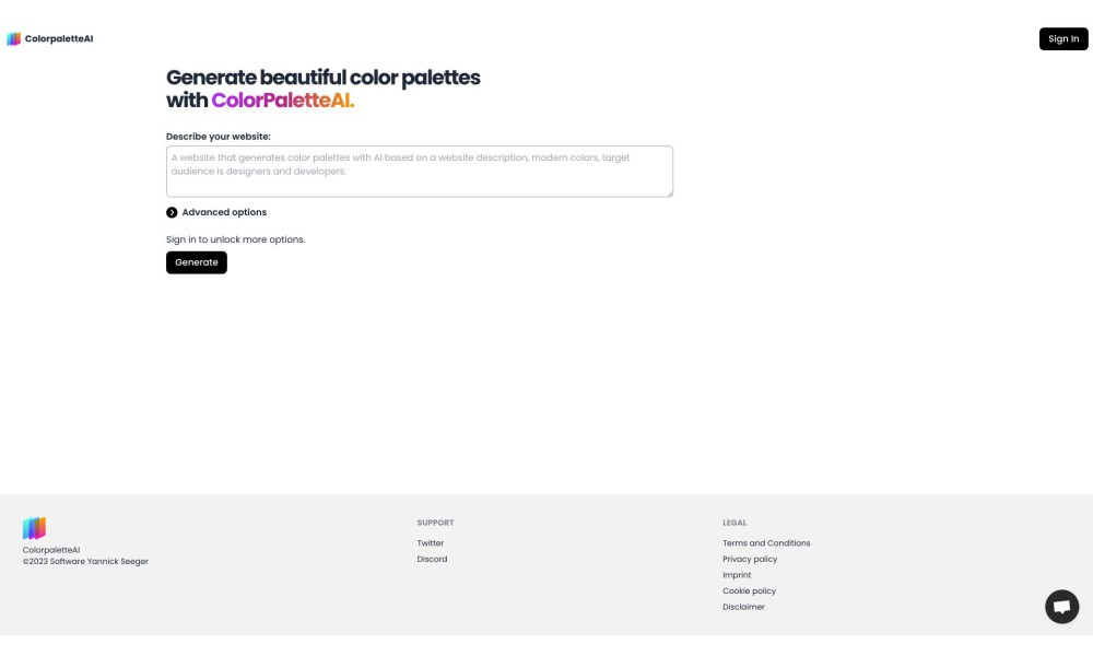 To use ColorpaletteAI, just tell it about your website, and its AI will create a beautiful, custom color palette for you. You can also dive into advanced features to fine-tune the palette until it's just right.