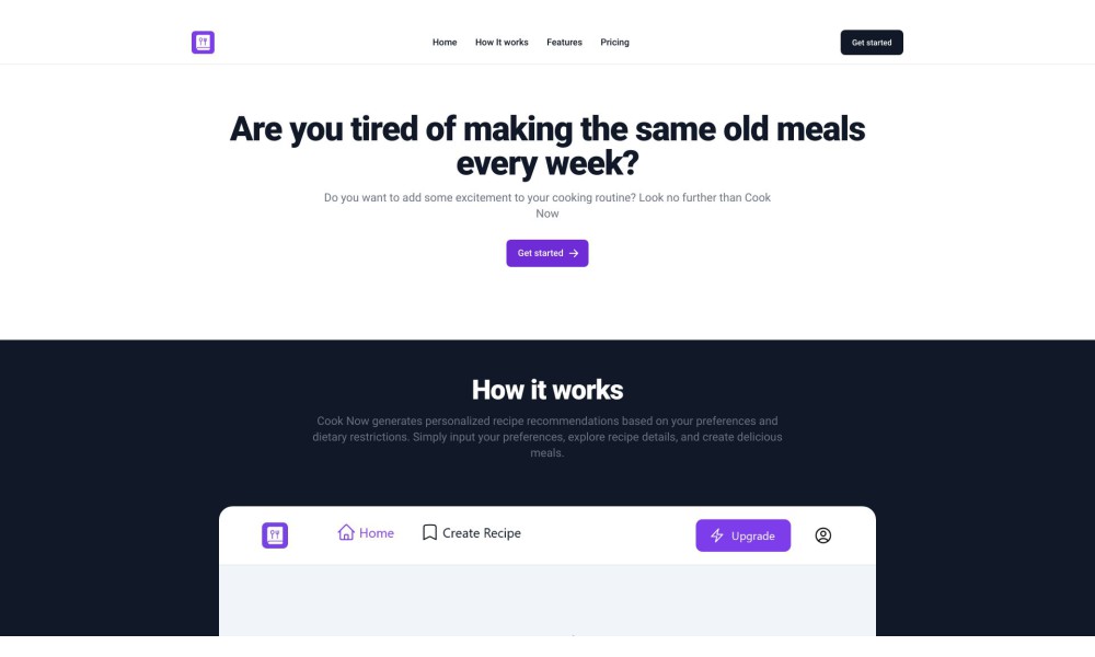 To use Cook Now, just sign up for an account on our website. Once you're logged in, you can tell it about your dietary preferences and any restrictions you have. RecipeGenius will then give you a personalized list of recipes based on what you told it. You can browse through those suggested recipes, pick your favorites, and get detailed instructions along with a list of ingredients you'll need.