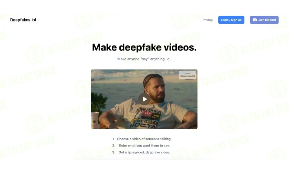 Using Deepfakes.lol is simple: just sign up or log in. Once you're in, you can upload any video or audio file you like, and their AI will generate a lip-synced deepfake video for you.